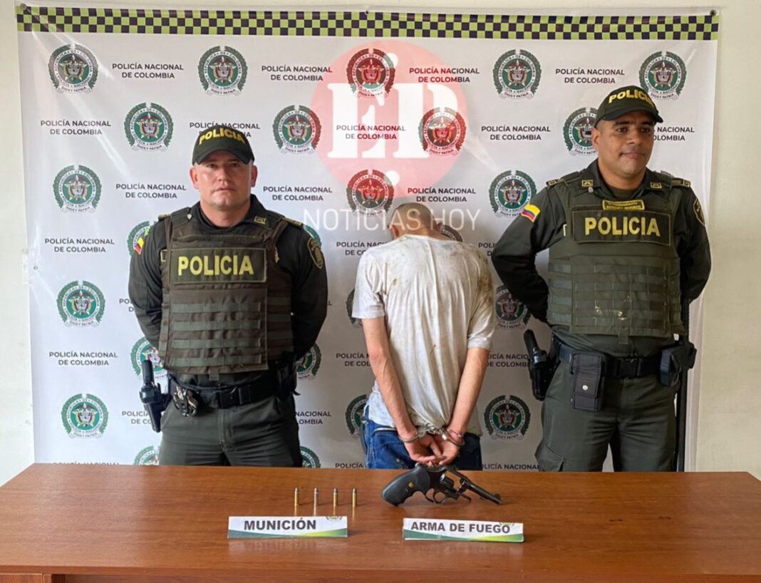 La captura de este hombre, se registró cuando la policía estaba realizando labores de patrullaje por el barrio Nueva Granada y observaron sospechosamente al hombre que vestía una camiseta de rayas de colores y jean azul, el sujeto estaba sentado en un andén con el arma de fuego en las piernas, la situación se presentó exactamente en el sector conocido como Barro Blanco.