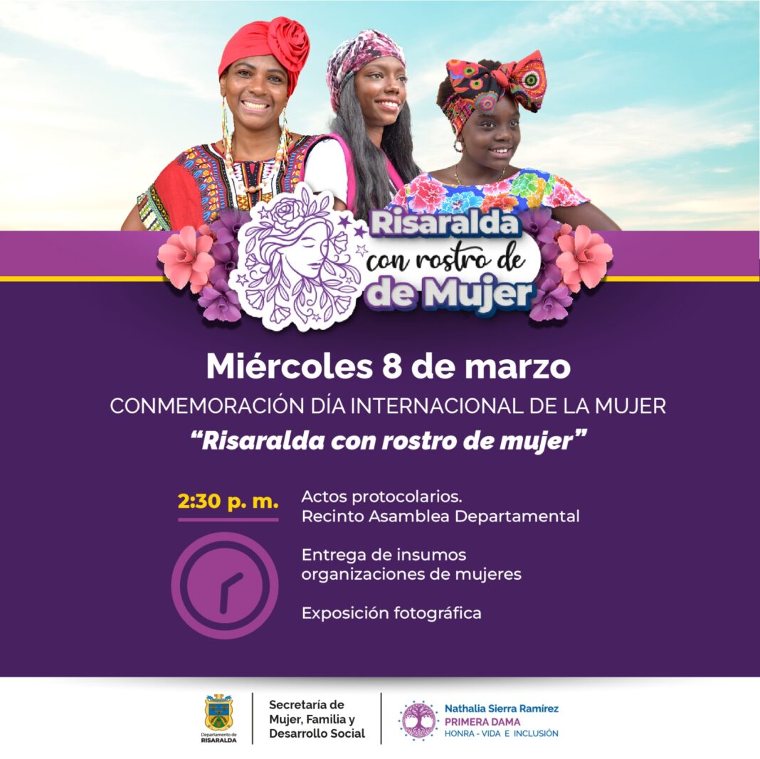 La Gobernación de Risaralda ha preparado una serie de actividades para conmemorar el Día Internacional de la Mujer bajo el lema «Risaralda con Rostro de Mujer». Entre las acciones que se llevarán a cabo en el mes de marzo se encuentra la entrega de insumos a emprendedoras, una feria artesanal, cultural y musical, una exposición fotográfica, la implementación de un protocolo de atención a funcionarias víctimas de violencia y la presencia en el Megabús.