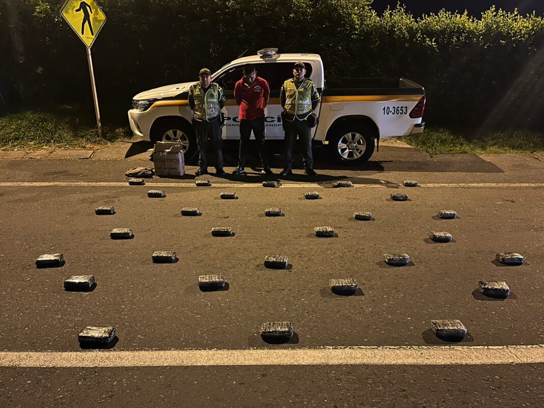 Los uniformados, detuvieron el vehículo, con el fin de realizarle registro al tanto al automotor como pasajeros y equipaje, procedimiento por el cual fue hallado un hombre de 36 años edad, que se movilizaba como pasajero, quien al momento de registrar su equipaje fue sorprendido portando un bolso 30 paquetes color negro forrados que en su interior contenían un total de 15.000 gramos de marihuana tipo Creepy, avaluados en $30’000.000.