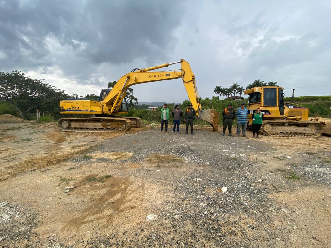 Durante actividad operacional adelantada en la vereda Montelargo sector de la variante Condina, donde se encontraban estos dos sujetos naturales de la ciudad Armenia y el municipio de Viterbo Caldas, quienes además se encontraban realizando actividades de corte y disposición de material sobrante de descapote y excavación, se logró además evidenciar que estaban disponiendo del mismo para la conformación de un lleno sobre ladera natural, afectando zona forestal protectora de fuentes hídricas con maquinaria amarilla.