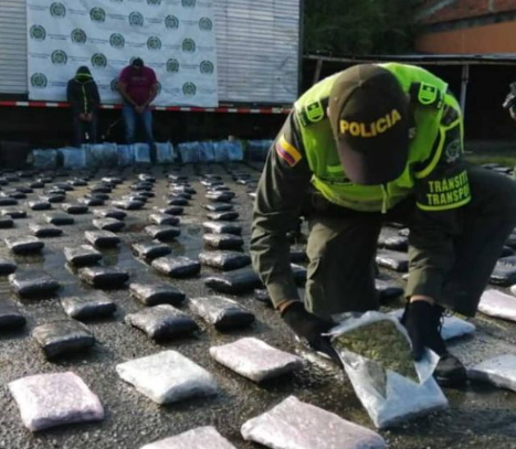 En un operativo realizado por la Policía en Cerritos, jurisdicción de Pereira, se incautaron alrededor de 100 kilos de marihuana que eran transportados en un camión de servicio público que cubría la ruta Cali – Bucaramanga. Como resultado del operativo, fueron capturados dos hombres por el delito de tráfico, fabricación y/o porte de estupefacientes.