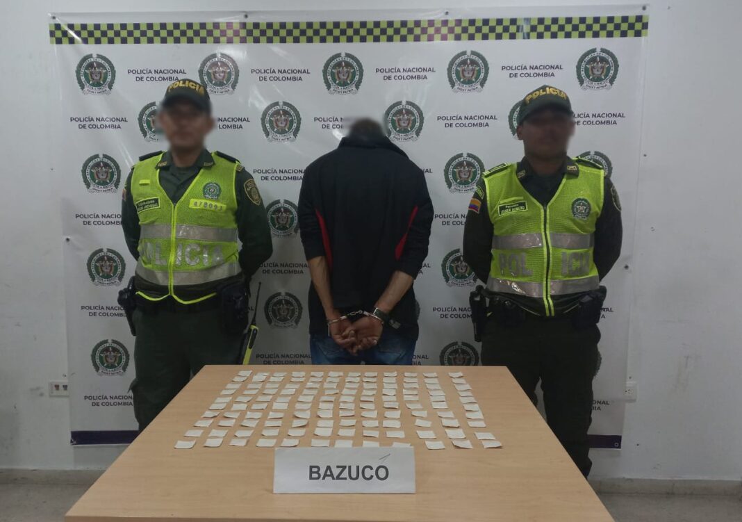En un operativo de la Policía Nacional adelantado por integrantes del CAI La Libertad, en la avenida Ferrocarril con carrera 10 del barrio La Paz, fue capturado un hombre de 30 años, oriundo de Alcalá, Valle del Cauca. Al momento de la captura, el hombre portaba una bolsa plástica con varias dosis de bazuco.