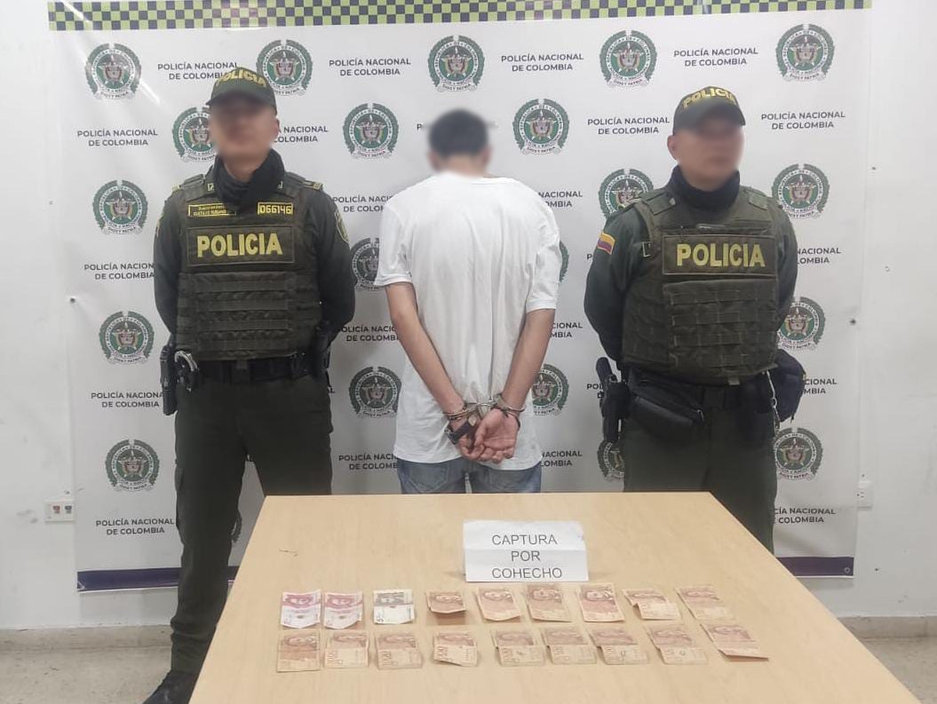 En un operativo de registro y control llevado a cabo por integrantes del CAI Boston en la manzana 1 del barrio Rincón del Bosque, se logró la captura de un hombre de 23 años, natural de Pereira, por el delito de cohecho.