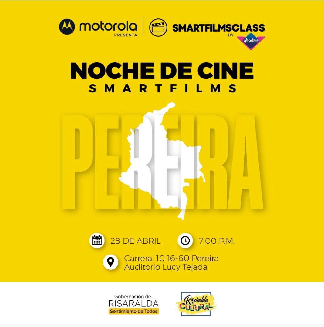 La Gobernación de Risaralda apoya este gran Festival de cine SmartFilms® que se realiza entre el 26 y el 29 de abril en el departamento, organizado por SmartFilmsClass, quienes lideran el festival de cine hecho con celulares, más grande del mundo, con la idea de democratizar el cine, creando un espacio de aprendizaje y difusión de conocimientos relacionados con el cine y la realización audiovisual, enfocado en las nuevas tecnologías, reuniendo actores, escritores, talleristas y productores para llevar el arte a todos los rincones del país.