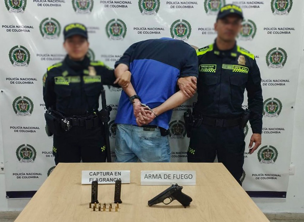Por otra parte, en el barrio el Martillo del municipio industrial, es capturado un hombre de 37 años, natural de Pereira, conocido como “Cali”, quien al notar la presencia policial trata de huir, logrando ser interceptado metros más adelante, y al ser registrado se le encuentra en su poder un arma de fuego, tipo revolver, calibre 38, con cinco cartuchos para el mismo, sin permiso para porte o tenencia.