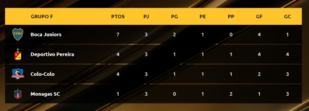 El líder del grupo es Boca Juniors con 7 puntos y será el próximo rival del campeón colombiano, por la fecha 4 en el estadio Hernán Ramírez Villegas el 24 de mayo a las 7:00 de la noche.