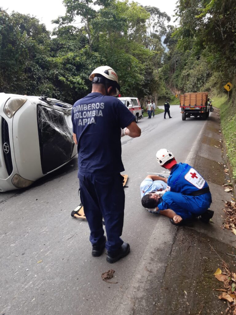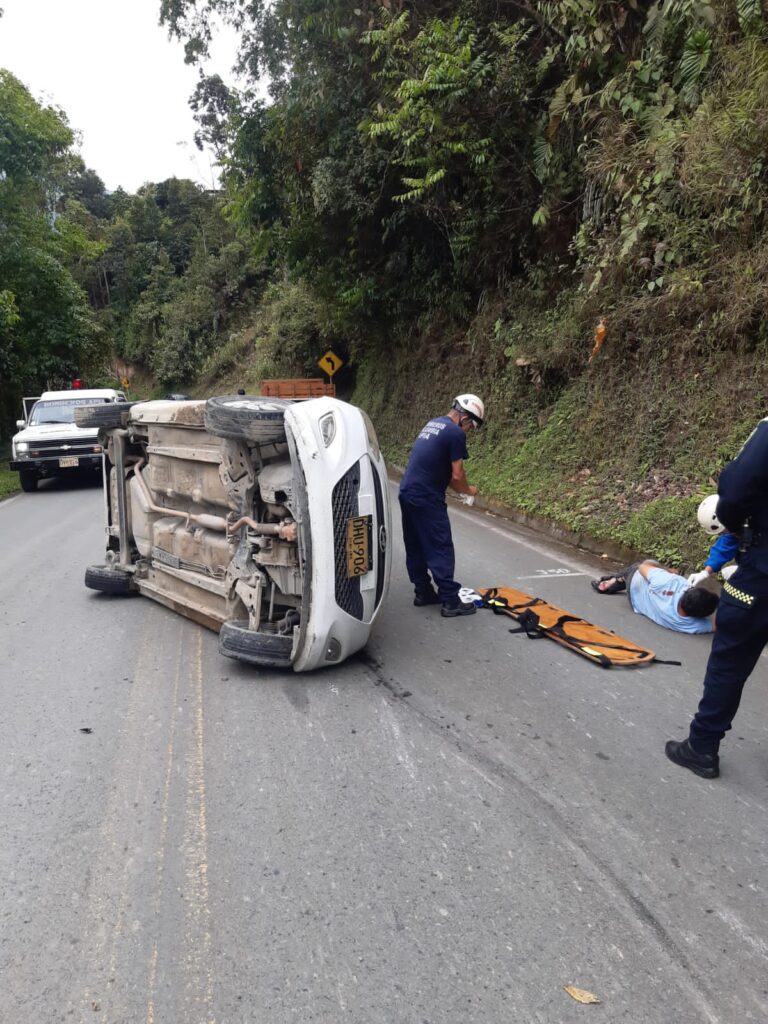 Un accidente de tránsito se ha presentado en la vía Pueblo Rico – San Joseco en horas de la tarde de hoy. Según las autoridades locales, un vehículo que se dirigía hacia la ciudad de Pereira, perdió el control y sufrió un volcamiento en plena carretera. Afortunadamente, solo una persona resultó lesionada en el accidente.