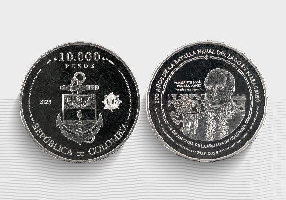 La moneda también incluirá tres textos conmemorativos: «200 años de la Batalla Naval del Lago de Maracaibo», «24 de julio Día de la Armada de Colombia» y «1823-2023». Además, se representará la imagen de un buque con sus velas desplegadas navegando.