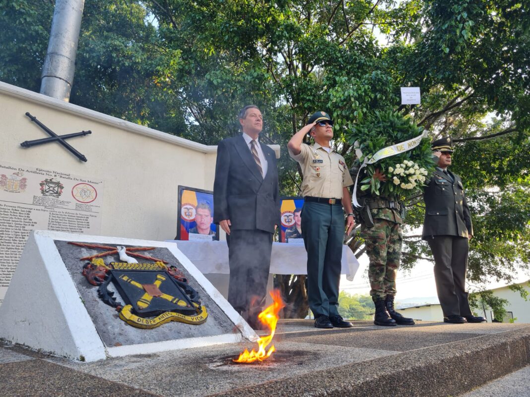«Esa fecha siempre enlutará nuestros corazones, es un compromiso con ellos y sus familias no olvidarlos», señaló el Mayor Jaime Alberto Salinas, Comandante encargado del Batallón de Artillería de Campaña N.°8 San Mateo. «Gracias a su valor, gallardía y ahínco, evitaron que la base fuese tomada y que las comunicaciones para el sur occidente del país fueran cortadas», añadió.