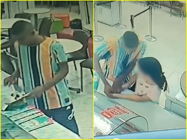 En las impactantes imágenes, se puede ver a dos niñas inocentes en el mostrador de una heladería, mientras un hombre con camisa a rayas parece estar esperando su turno para realizar una compra. Mientras las pequeñas hacen su pedido, este individuo se va acercando sigilosamente.