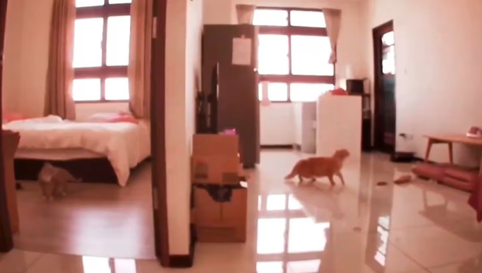 A CCTV camera captured the behavior of cats during the earthquake in #Taiwan. The cats are clearly disoriented.
