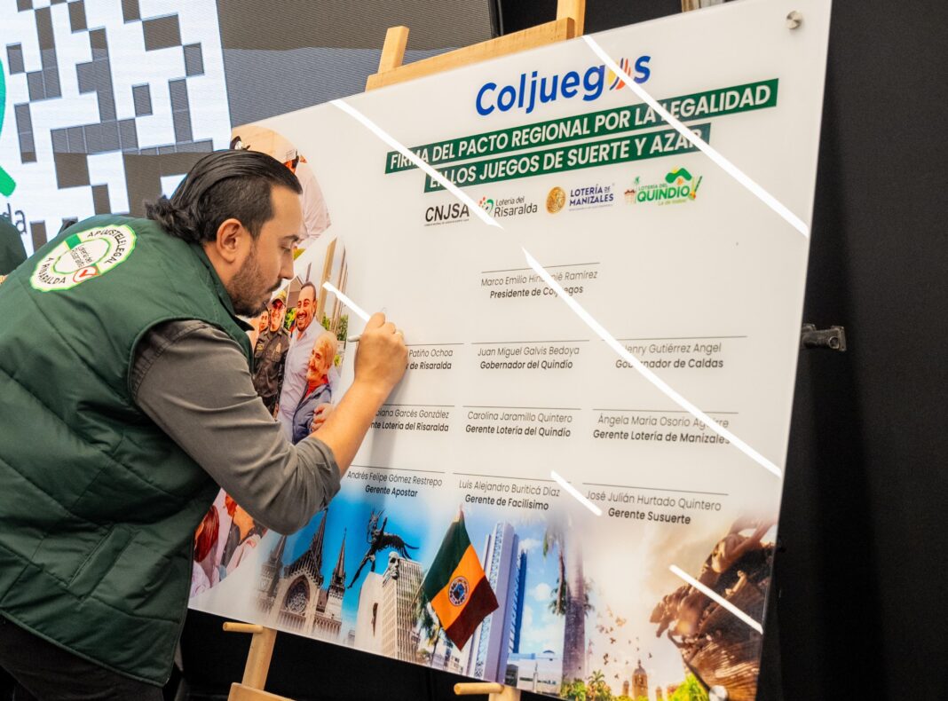 En un evento histórico para el Eje Cafetero, el gobernador Juan Diego Patiño Ochoa y la gerente de la Lotería del Risaralda, Bibiana Garcés González, encabezaron la firma del pacto regional por la legalidad en los juegos de suerte y azar. Este encuentro, promovido por Coljuegos, marca un paso significativo hacia la transparencia y el cumplimiento de la Ley 643 de 2001 en la región.