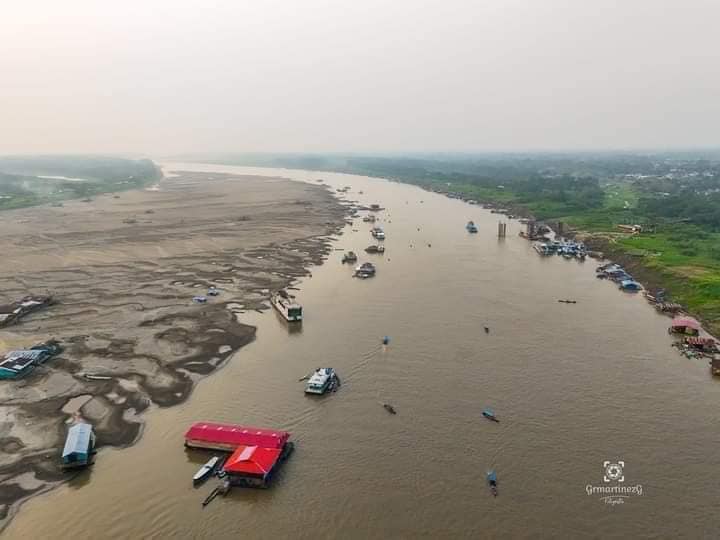 La sequía prolongada que afecta a la región amazónica ha llevado a niveles históricamente bajos en el caudal del río Amazonas. Normalmente conocido por su vasto caudal y su capacidad para mantener el ecosistema acuático vibrante, el Amazonas ahora enfrenta una crisis ambiental sin precedentes. En Leticia, las embarcaciones que anteriormente navegaban por aguas profundas ahora deben maniobrar a través de áreas secas, dejando expuesta una playa de arena que nunca se había visto antes en esta zona del río.