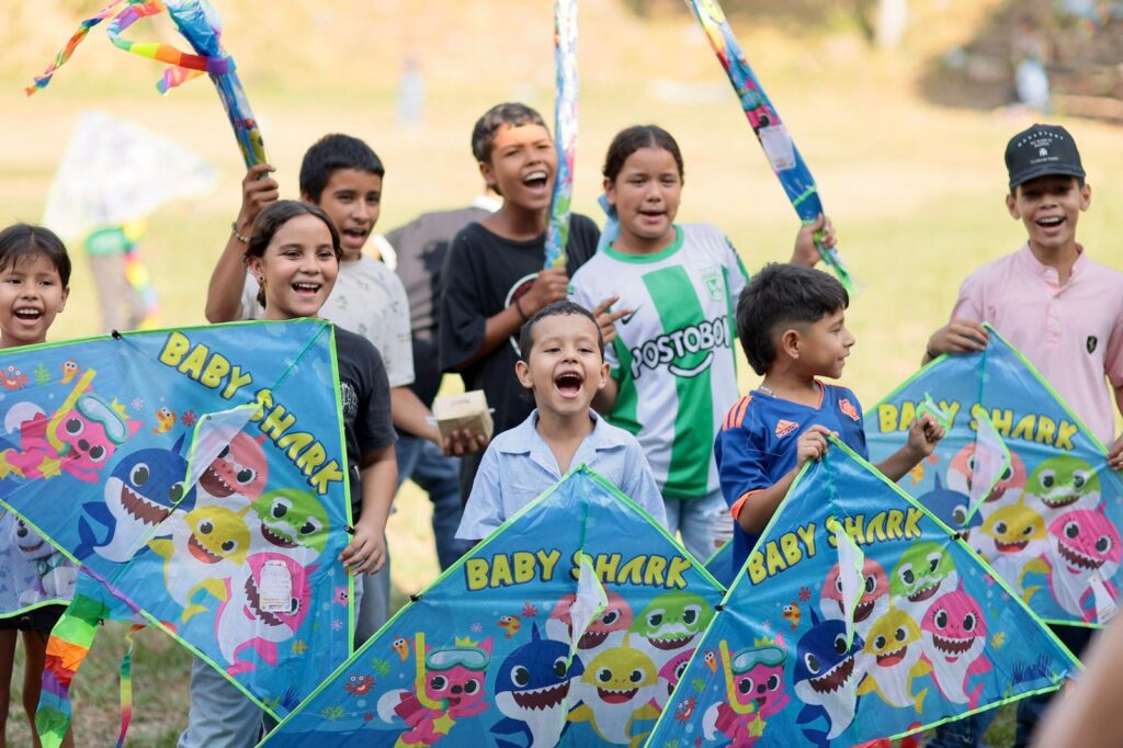 La jornada, que tuvo lugar en el coliseo de Puerto Caldas, reunió a niños y niñas junto a sus familias para una tarde llena de actividades. Cada pequeño recibió una cometa con motivos de dibujos animados y superhéroes, simbolizando la esperanza y la posibilidad de alcanzar sus metas. Además de la entrega de las cometas, los niños participaron en juegos dirigidos por recreacionistas y disfrutaron de un refrigerio especialmente preparado para la ocasión.