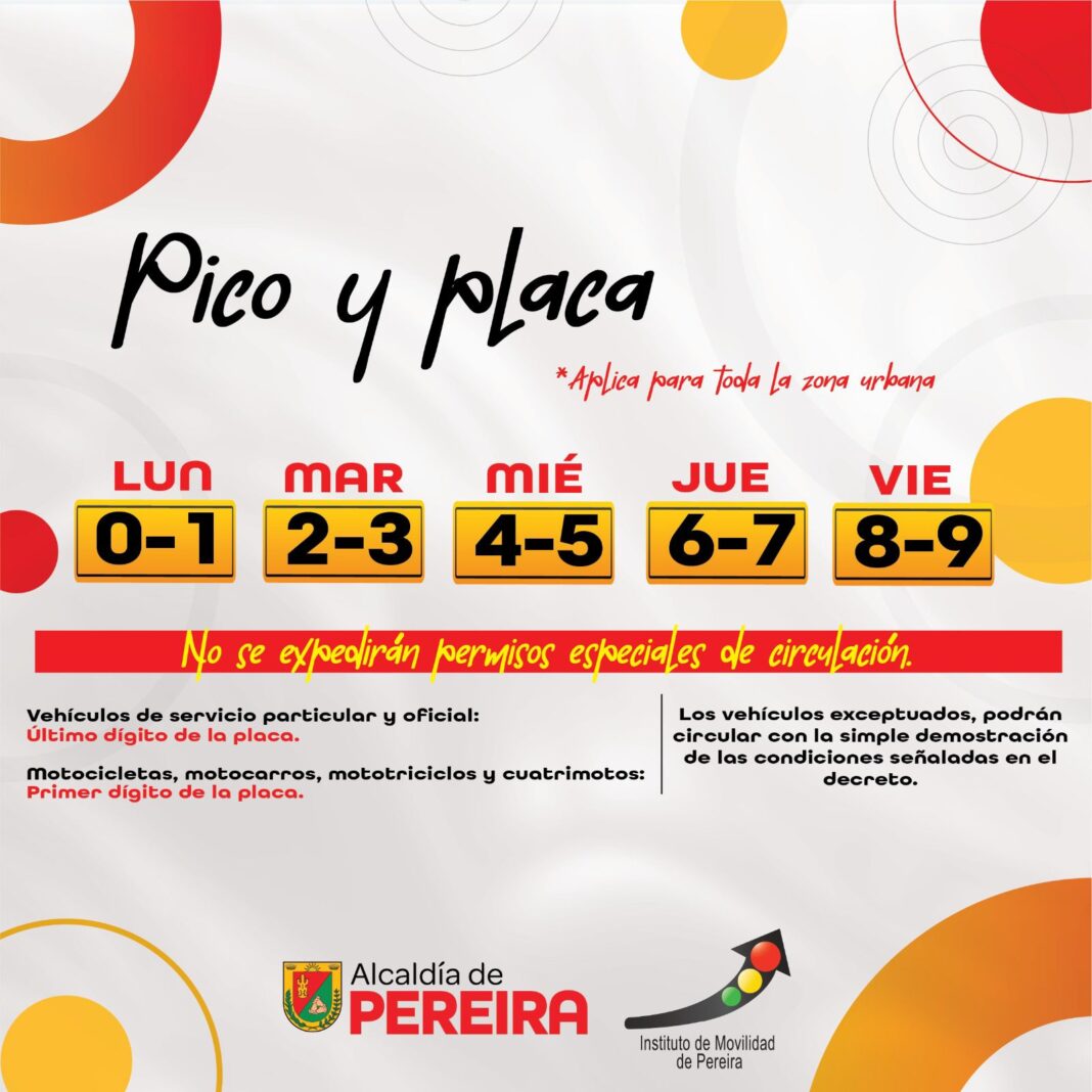 La Alcaldía reafirma la continuidad del Pico y Placa en Pereira, desmintiendo rumores sobre modificaciones.