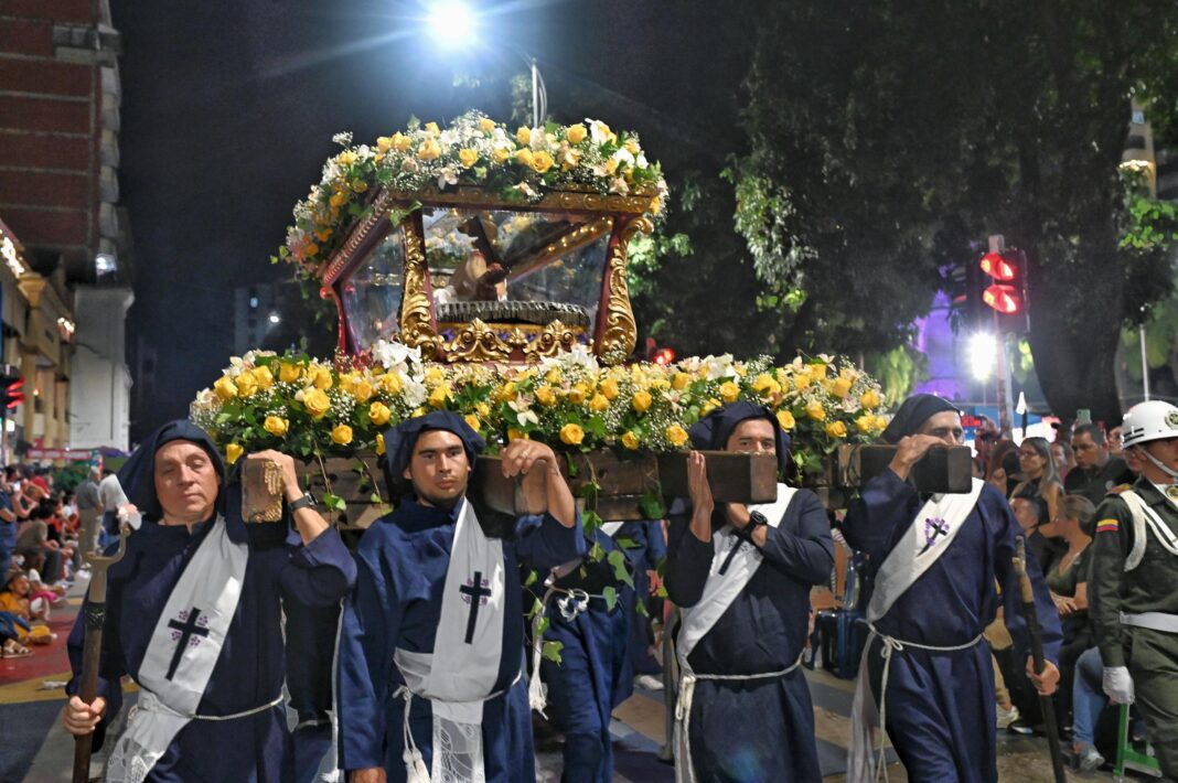 La procesión del Santo Sepulcro es uno de los momentos más emblemáticos de la Semana Santa en Pereira, y este año no fue la excepción. Miles de personas participaron en este recorrido por las calles del Centro de la ciudad, donde las imágenes religiosas fueron portadas con devoción y respeto. Acompañados por bandas musicales de la Policía Nacional, el colegio militar Rafael Reyes y la Secretaría de Cultura de Pereira, los feligreses vivieron una jornada llena de espiritualidad, música sacra y fervor religioso.