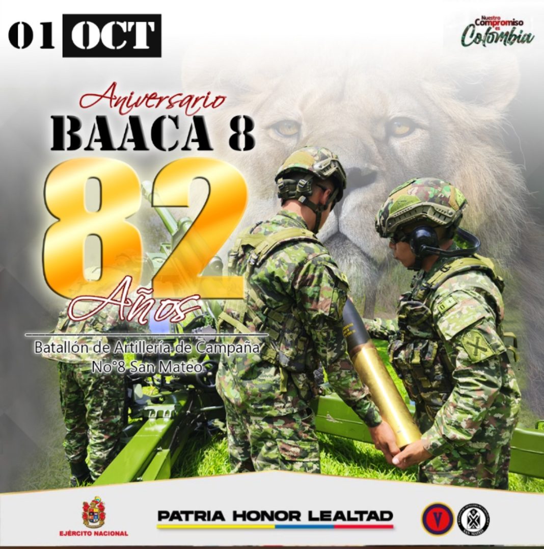 El Batallón de Artillería de Campaña N.º 8 “San Mateo” conmemora en 2025 dos hitos importantes: 92 años de vida institucional y 82 años de presencia en Pereira, reafirmando su papel esencial en la seguridad de Risaralda y el Eje Cafetero. Esta unidad militar ha acompañado a la ciudadanía en momentos decisivos, dejando un legado de disciplina, honor y compromiso con Colombia.