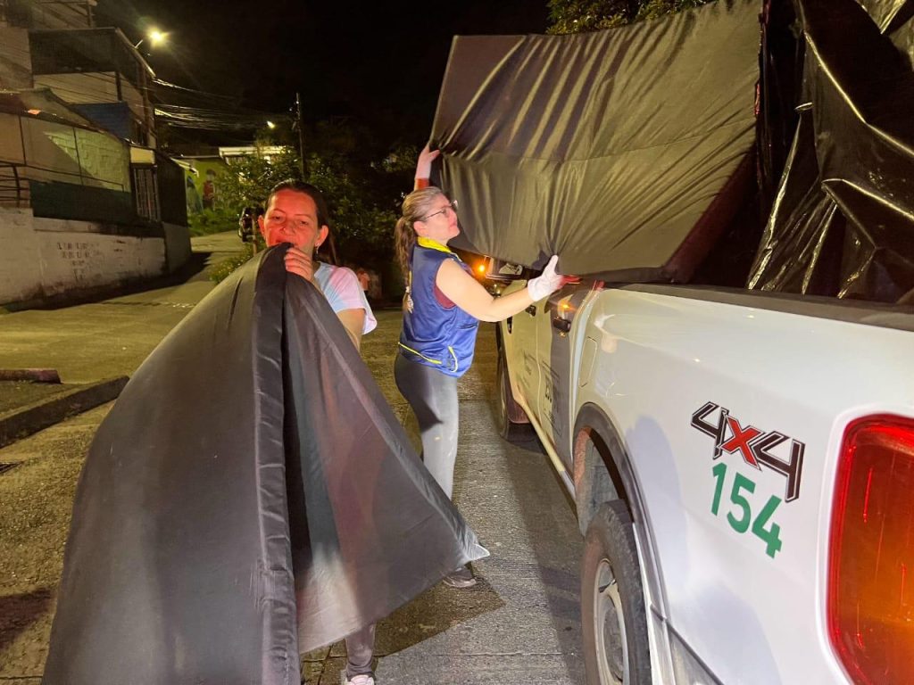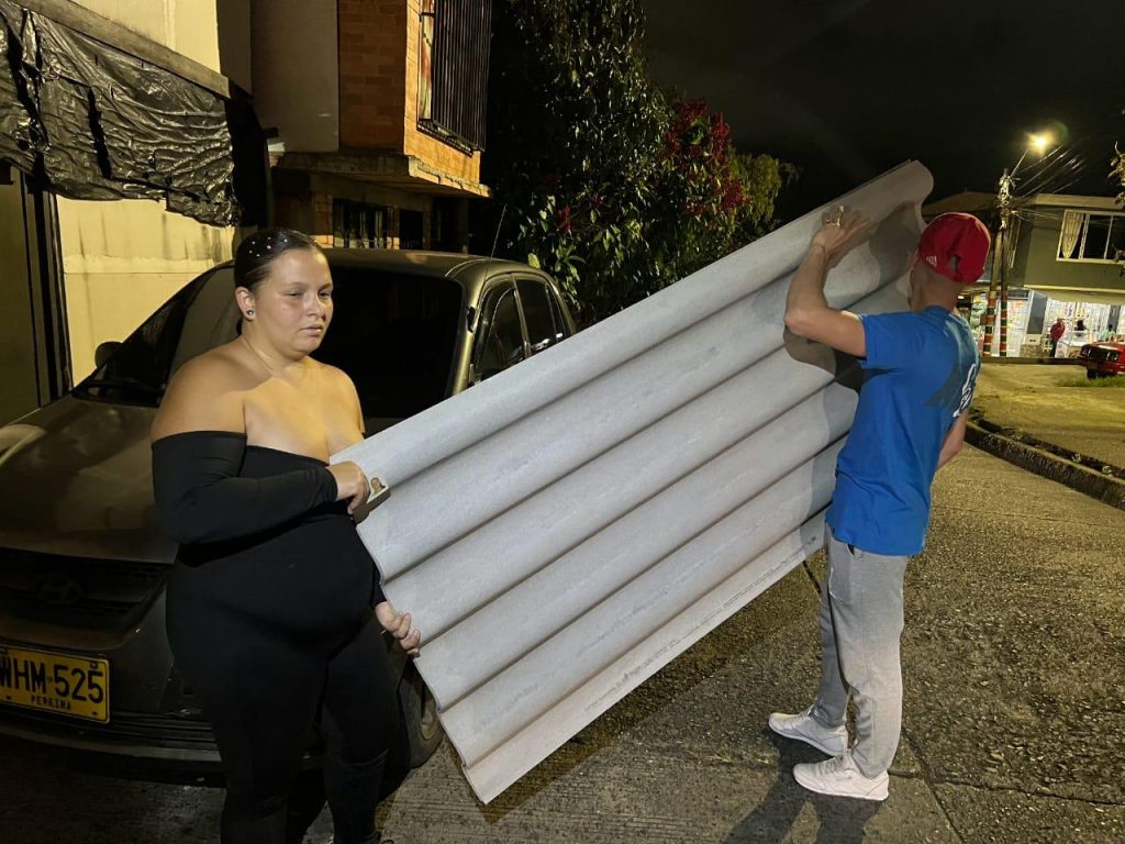 Durante los días sábado 25 y domingo 26 de octubre, la Alcaldía de Pereira, a través de la DIGER, realizó la entrega de ayudas a 22 familias del sector de Villa Santana, una de las zonas más afectadas por las lluvias y el vendaval. El acompañamiento de los equipos técnicos y operativos permitió llevar kits de colchonetas, elementos de abrigo, alimentos y tejas de zinc o eternit, dependiendo de las necesidades de cada hogar.