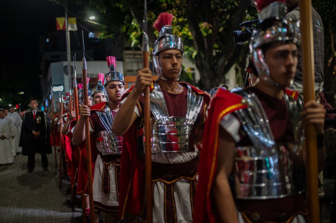 En el centro de Pereira, la Semana Santa se vive con solemnidad. Sin embargo, uno de los elementos más llamativos es la presencia de la Guardia Romana de Pereira.